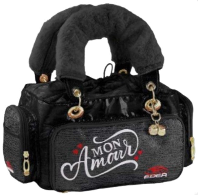 The Mon Amour Bag is available with detachable faux-fur handles, a trendy basket weave pattern and stylish trim.